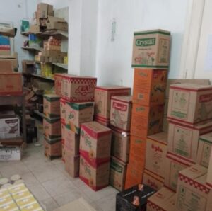 كما تم ضبط “هايبر ماركت “بحوزته سلع بدون فواتير ( مجهولة المصدر ) وتم التحفظ على طن ونصف سكر ،٢٤٠٠ عبوة زيت ،١٢٠٠ عبوة مياه معدنية.