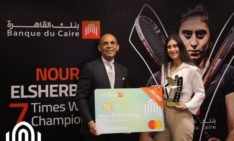 بنك القاهرة يكرِّم البطلة الرياضية «نور الشربينى» لإنجازاتها الرياضية غير المسبوقة وحصولها على بطولة العالم للاسكواش للمرة السابعة فى تاريخها والخامسة على التوالى