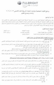 كتب عماد رمضان تعلن هيئة فولبرايت مصر عن فتح باب التقديم لبرنامج الكليات المجتمعية للعام الأكاديمي 2023 – 2024 (وهو برنامج ممول في ضوء الاتفاقية الموقعة بين الحكومتين المصرية والأمريكية منذ عام 1949) و يوفر الفرصة للمهنيين المصريين لحضور عام أكاديمي واحد في إحدي الكليات المجتمعية الامريكية لبناء مهارتهم الفنية في المجالات التطبيقية ، وتعزيز قدراتهم الريادية ، وتقوية إجادتهم للغة الإنجليزية ، وتوفير فرص للتدريب المهني والمشاركة المجتمعية في إحدى المجالات المتاحة للتقديم وهي كالاتي:-