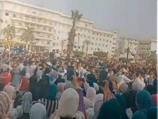 الآلاف من طلاب جامعة بنى سويف يتظاهرون تأييدا للرئيس السيسى وتنديدا بمذابح غزة