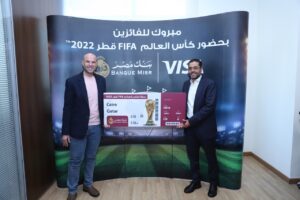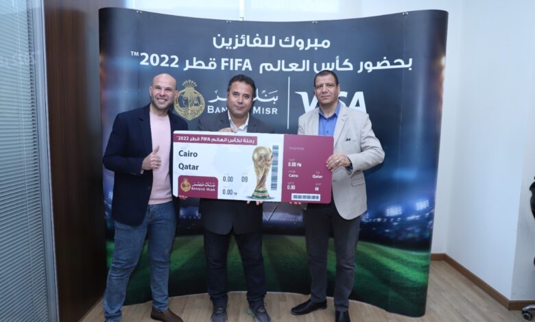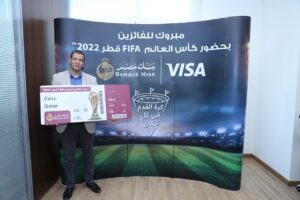 احتفل بنك مصر مؤخراً مع عملائه الفائزين في الحملة التسويقية التي تم إطلاقها لعملائه من حاملي بطاقات فيزا بنك مصر الائتمانية؛ وذلك تحت شعار (استخدم بطاقة بنك مصر فيزا الائتمانية واكسب فرصة حضور كأس العالم في قطر)، والتي فاز فيها 6 من عملاء بنك مصر حاملي بطاقات فيزا الائتمانية بباقة سفر متكاملة لحضور فعاليات بطولة كأس العالم FIFA 2022. وتشمل باقة السفر؛ اصطحاب مرافق، وتذاكر الطيران للذهاب والعودة للعاصمة القطرية (الدوحة)، حيث قام السيد الاستاذ/ إيهاب درة – رئيس قطاع الفروع والتجزئة المصرفية ببنك مصر بتسليم السادة العملاء الفائزين الجوائز في الاحتفالية التي نظمها البنك بهذه المناسبة.