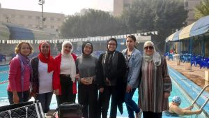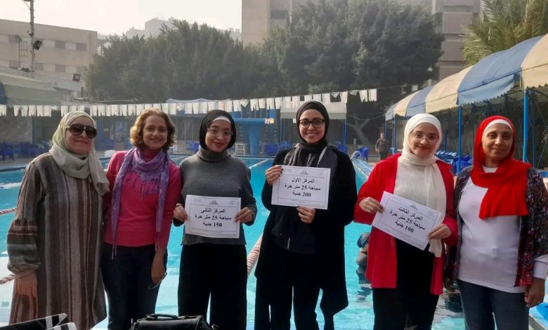 “فعاليات مسابقة سباحة 25 متر حرة بِحمام السباحة بِكلية البنات جامعة عين شمس “.