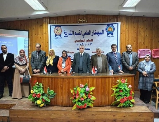 بحضور عميد كلية الآداب الأستاذ الدكتور رمضان عامر وفي سياق النشاط الطلابي العلمي والثقافي المتميز انعقد السيمنار العلمي بقسم التاريخ في قاعة المناقشات بالكلية تحت إشراف الدكتورة منال السيد رئيسة القسم وبتعاون فعال من أعضاء هيئة التدريس والهيئة المعاونة والسادة الإداريين والطلاب في القسم، حيث تم ولأول مرة في أنشطة القسم انعقاد جلسة بحثية متميزة للطلاب ذوي الهمم بالإضافة إلى مسرحة المواد الدراسية لتبسيط المواد الدراسية والمناهج التعليمية للطلاب، وقد شهد السيمنار حضور كبير للطلاب .