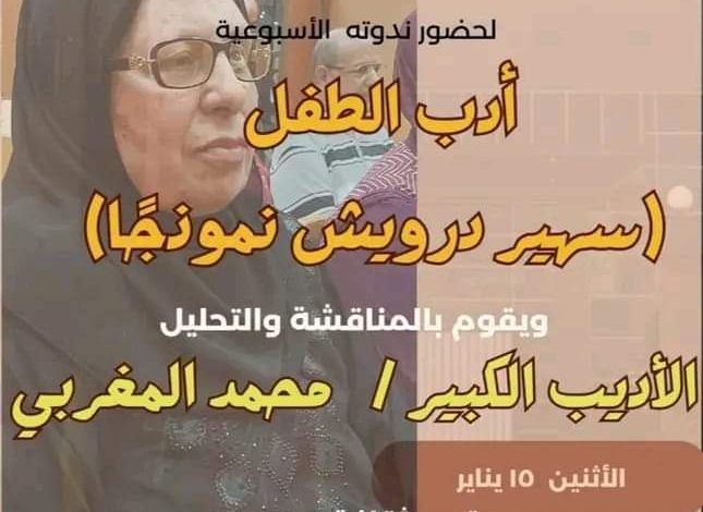 الاثنين القادم ندوة أدبية متنوعة “أدب الطفل سهير درويش نموذجًا”