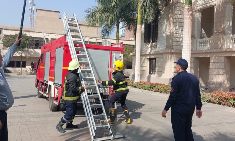رئيس جامعة بنها يشهد نموذج محاكاة خطة إخلاء مبني إدارة الجامعة