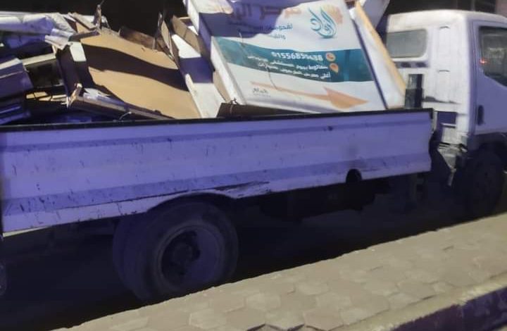 وأضاف رئيس المركز، أن الوحدة المحلية مستمرة في تنفيذ حملاتها الدورية والمفاجئة بنطاق الأحياء لإزالة كافة الإعلانات المخالفة لمنع استغلال المساحات الإعلانية دون وجه حق واتخاذ كافة الإجراءات القانونية تجاه المخالفين مؤكدا أنه لا تهاون في مواجهة أي مخالفات أو إشغالات تضر بصالح المواطنين.