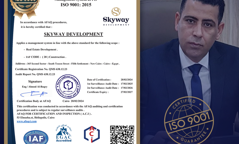 سكاي واي للتطوير العقاري تحصل على ثلاث شهادات آيزو للجودة