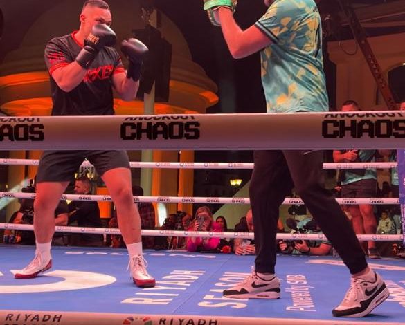 الملاكمون يؤدون مرانهم الاخير استعدادا لحث “الفوضي القاضية” غدا الجمعة بالسعودية