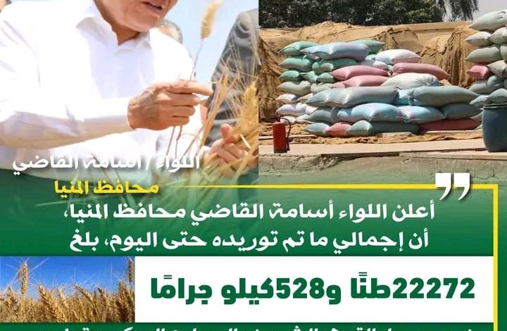 محافظ المنيا توريد 22 ألف طن من محصول القمح بالشون والصوامع الحكومية بمراكز المنيا