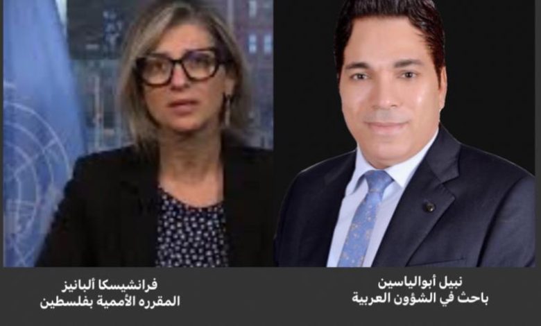 نبيل أبوالياسين ..«فرانشيسكا ألبانيز» تقر بعجز الآمم المتحدة في حماية الفلسطينيين