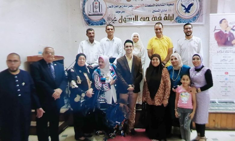 بالمدح والانشاد الديني ليلة محمدية في حب الله برعاية جمعية الشابات المسلمات بالتعاون مع مجلس الدفاع عن حقوق الانسان ببني سويف