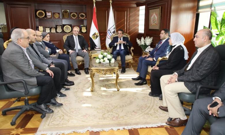 محافظ بني سويف يستقبل نائب رئيس مجلس الوزراء للتنمية البشرية وزير الصحة والسكان في زيارته للمحافظة