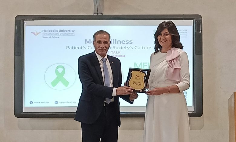 محاضرة للسفيرة نبيلة مكرم بجامعة هليوبوليس حول ثقافة المجتمع نحو المريض النفسى