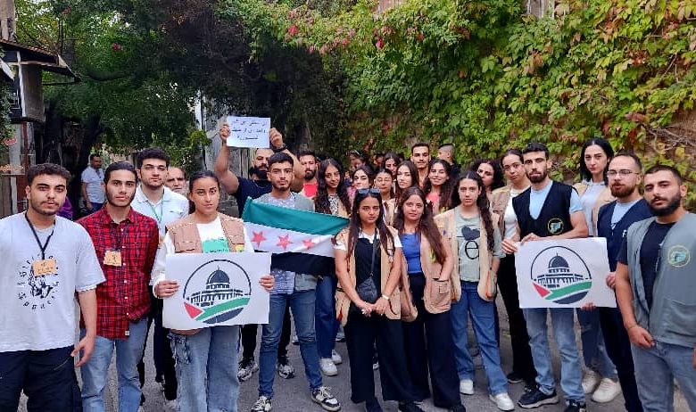 اقام مجموع من الناشطين في مدينة مصياف بريف حماة السورية وففة رافضة للتطبيع مع الاحتلال الاسرائيلي.