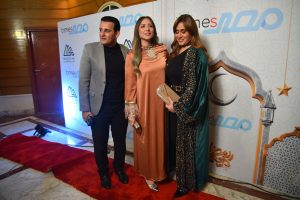 خطف الثنائي أحمد سمير ودينا شرف الأنظار فور وصولهما لمقر الحفل، حيث كان في استقبالهما قيادات مؤسسة “مصر تايمز”. ويعكس حضور النائب أحمد سمير وزوجته طبيعة هذا التجمع الذي يمزج بين العلاقات الإنسانية والروابط المهنية في إطار اجتماعي ودي بعيداً عن أروقة العمل الرسمية.