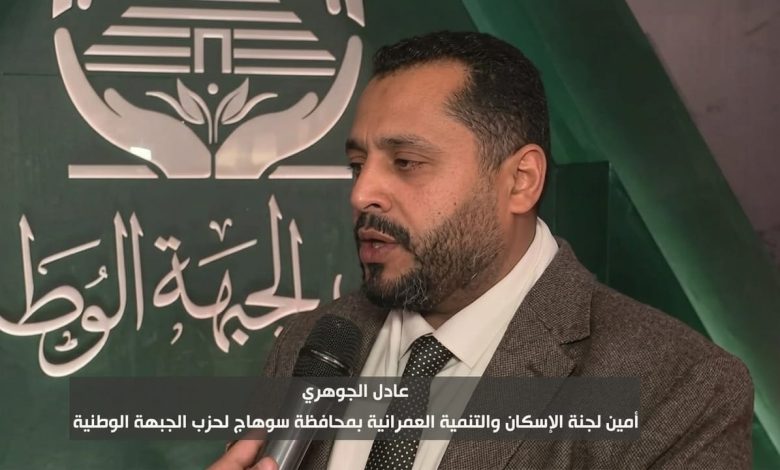 أشاد عادل الجوهري، أمين لجنة الإسكان والتنمية العمرانية بمحافظة سوهاج بحزب الجبهة الوطنية، بالملتقى الذي نظمه الحزب، مشيرًا إلى أنه جمع قيادات الأحزاب والقيادات التنفيذية للدولة، لتوضيح الظروف المحيطة بالمواطنين وطمأنتهم على الوضع الوطني.