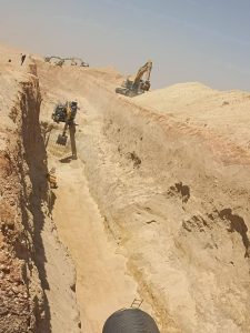 بنسبة التنفيذ والتي وصلت إلى 83%، مع الالتزام الكامل بالجداول الزمنية بنية تحتية عملاقة ، من خلال بمد شبكات بطول 20 كم، وبأقطار ضخمة تصل إلى 2700 مم، تكنولوجيا الجيل الرابع: نستخدم مادة البولي إيثيلين المعرج (CHDPE) لضمان أعلى معايير الجودة والاستدامة.