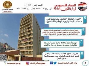 تنشر وزارة القوى العاملة اليوم الجمعة وفي هذا البيان، وبالإنفوجراف، حصاد نشاطها خلال الـ7 أيام الماضية ،والذي يرصد الأنشطة والتوجهات التي تنفذها الوزارة لخدمة الوطن والمواطن ،ويُمكن التأكيد من خلال ذلك الحصاد على حرص الوزير حسن شحاتة وزير القوى العاملة على التركيز على ملفات تتماشى مع الإتجاه العام للدولة المصرية في الحماية والرعاية والدعم ..ملف ذوى الهمم حظي بالإهتمام الأكبر ،تنفيذا لتوجيهات الرئيس عبدالفتاح السيسي بدمج هذه الفئة في سوق العمل والمجتمع ،وتدريبهم وتأهيلهم للدخول في ذلك “السوق” ،فكان اجتماع للوحدة المركزية لمتابعة تدريب وتشغيل ورعاية ذوي الإعاقة،وكان إستكمال إجتماعات “الوزير” مع مديري المديريات بكافة المحافظات لإعداد قاعدة بيانات ومعلومات عن أعداد المنشآت في كل محافظة ،ونسب تعيين ذوي الهمم بها ..ولعل هذه الثقافة التي تمارسها “الوزارة” مع الملفات ،تؤكد التعامل بشكل علمي ومعلوماتي حتى يتم مواجهة التحديات بشكل منظم وواقعي وعلى أرض الواقع ،وهذا ما يحدث الآن مع كافة الملفات التي تتبناها “الوزارة” خلال هذه الفترة ..الحصاد أيضا يرصد تفاصيل إجتماع صندوقي طوارئ إعانات العمال ،وتمويل التدريب والتأهيل ،والذي كشف عن حجم ما جرى إنفاقه خلال الـ6 أشهر الماضي للمنشآت المتعثرة ،وحماية عمالها ،وكذلك على تمويل التدريب والتأهيل ..واصلت “الوزارة أيضا نشاطها في المشاركة وتنظيم ورش عمل بشأن الاستراتيجية الوطنية للتشغيل ،بهدف سرعة إنجازها ،لضبط سوق العمل ،وضخ دماء مُدربة في “شراينه”..في الوقت ذاته تواصل مديريات القوى العاملة في المحافظات في تنفيذ خطة التدريب 2022-2023، لتدريب الشباب والفتيات على مهن يحتاجها سوق العمل ،والإستفادة القصوى من مراكز التدريب الثابتة والمتنقلة والمتنشرة الآن في نطاق محافظات المبادرة الرئاسية “حياة كريمة” ..كما واصلت مكاتب التمثيل العمالي في الخارج وعددها 9 مكاتب ،دورها في رعاية وحماية وتوعية المصريين العاملين في نطاق تلك المكاتب وعددهم أكثر من 5 ملايين مواطن مصري ..إلى التفاصيل ..