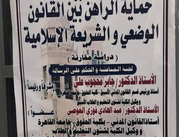 الكاتب “محمد ابراهيم الشقيفى”يعني الأستاذ”هاني محمد شعبان عطيه” علي درجة الدكتوراه في القانون